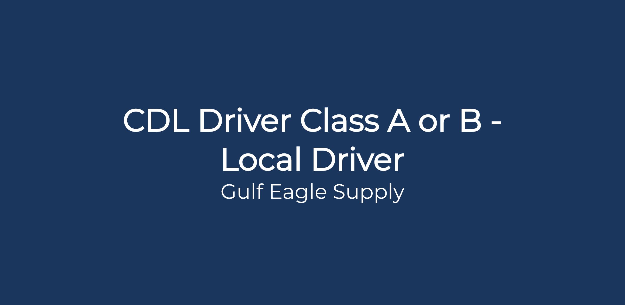 Driver *Competitive Sign-On Bonus Available and HOME EVERY NIGHT!*  If you are a driver looking to establish a career with one of the top Building Supply Distributors Nationwide, then Gulfeagle has the job for you. Our drivers are responsible for safely driving the most efficient route to the job site, while observing and obeying all traffic laws and safety regulations as well as company policies/procedures. They assist in loading and/or securing materials on trucks daily and help unload materials by using crane, conveyor, piggybacks and/or by hand. Gulfeagle drivers are the face of our Company on the jobsite as they lead, instruct, and supervise others.We take pride in delivering the highest quality and best value to our customers and would be pleased to make you a part of that mission. Here at Gulfeagle we are "Building a Career for YOU"Requirements: • Valid state CDL Class A or B Driver’s License with clear MVR and DOT record• Must be 21 years old or older• Must have current and valid Medical Certification Card• Must have held CDL driving position the previous year with consecutive driving experience• Must have high degree of attention and considerable dexterity in the control of the vehicle• Strong communication skills (verbal and written)• Must be able to work both indoors and outdoors under adverse weather conditions.• Ability to bend, reach, lift, and climb• Ability and willingness to climb on a rooftop and ensure proper stacking (location based)• Must have the ability to repeatedly lift up to 100 pounds of material for extended periods of time• Must be able to climb a 40’ ladder (location based)• Perform daily vehicle inspections and maintain the cleanliness of vehicles• Must be a U.S. citizen or be authorized to work in the U.S**Must be able to pass a company required drug screening; all employees are subject to random drug testing per company policy**Preferred:• Previous material handling a plus• Previous forklift experience• Certified to operate a crane is a plus Other Details: Pay based on experience  Competitive Benefits Package:• 401(k) Retirement Plan including Employer Match• PTO & Paid Holidays• Health Insurance - Medical, Dental & Vision• Life, AD&D, Short & Long-Term Disability• Health & Wellness Programs• Flexible Spending Accounts• Health Savings Accounts• Employee Discount Programs• Driver Sign-On Bonuses   This Job Summary indicates the general nature and level of work expected of the incumbent(s). It is not designed to cover or contain a comprehensive listing of activities, duties, or responsibilities required of the incumbent. Incumbent(s) may be asked to perform other duties as requested. Gulfeagle Supply is an Equal Opportunity Employer. We do not discriminate based on age race, gender color, religion, national origin, disability marital status, veteran status, sexual orientation, gender identity, or other characteristics protected under federal, state, or local law.    All duties and responsibilities are essential job functions and requirements and are subjected to possible modifications to reasonably accommodate individuals with disabilities. We are proud to be an EEO employer M/F/D/V. We maintain a drug-free workplace