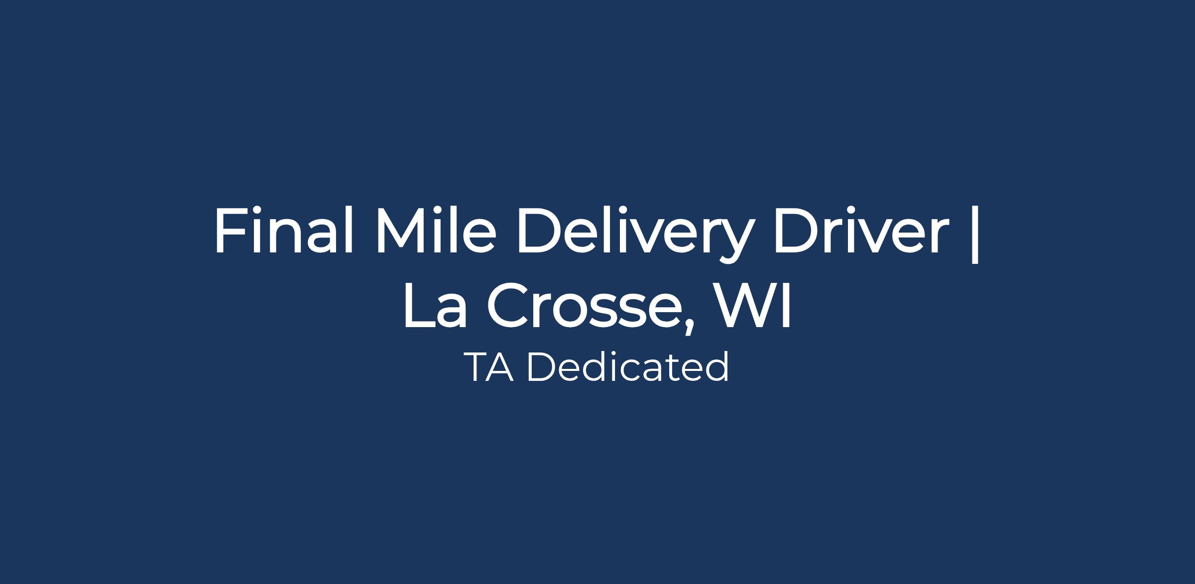 Now Hiring – Final Mile Delivery Driver | La Crosse, WI Area